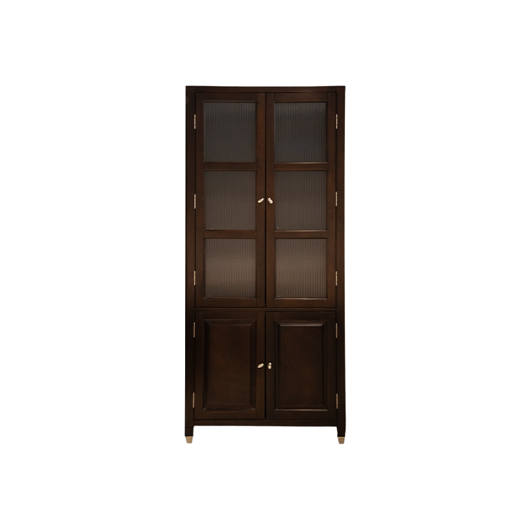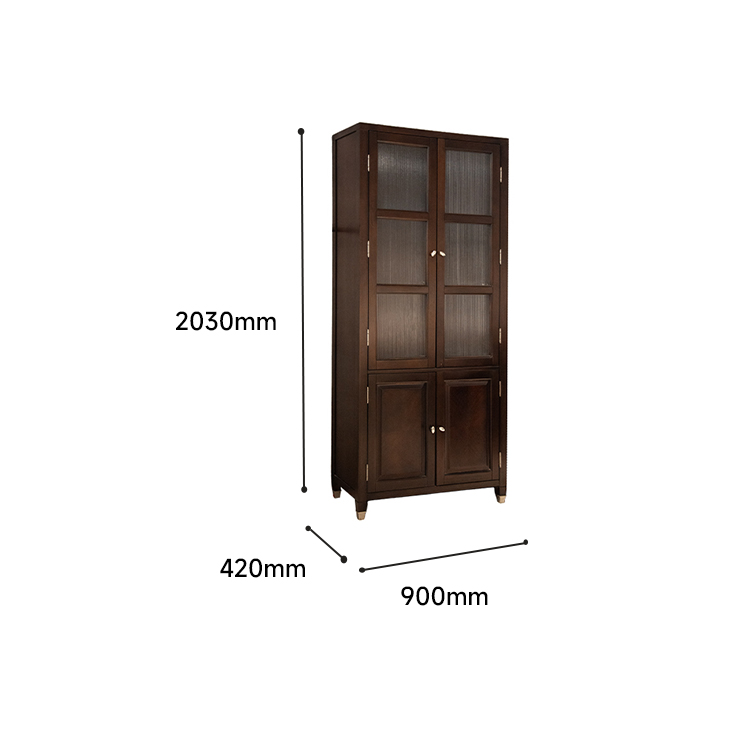 主材為楊木,麵板木皮拚花為產自美國的閃影黑胡桃薄片,在適當部位使用P2級美國出口標準MDF環保板,克服了純實木美女黄色视频软件由於濕脹幹縮引起的開裂和變形,比起純木美女黄色视频软件來說更具有持久性和穩定性。條紋裝飾玻璃是整個書櫃通透,方便看到裏麵書籍名稱,鎳色拉絲效果的拉手與不鏽鋼鏡麵套腳相映成趣,金屬邊框勾勒抽屜邊緣,為暗色增添一抹亮彩。