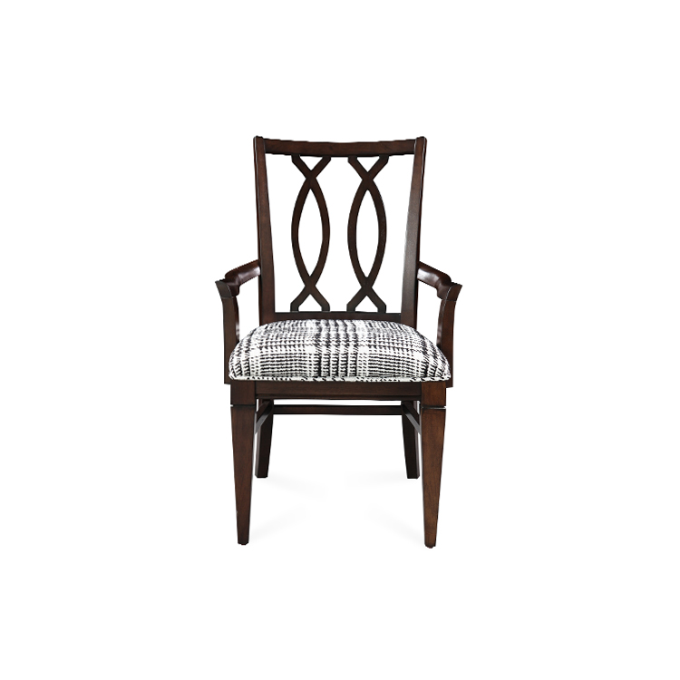 主材為泰國進口橡膠木實木,在適當部位使用P2級美國出口標準MDF環保板,克服了純實木美女黄色视频软件由於濕脹幹縮引起的開裂和變形,比起純木美女黄色视频软件來說更具有持久性和穩定性。典雅的希臘回紋型椅背雕花,為整體簡潔的造型增添了曲線美。麵料使用黑白千鳥格,黑白條紋等增加了顏色組合的豐富性。