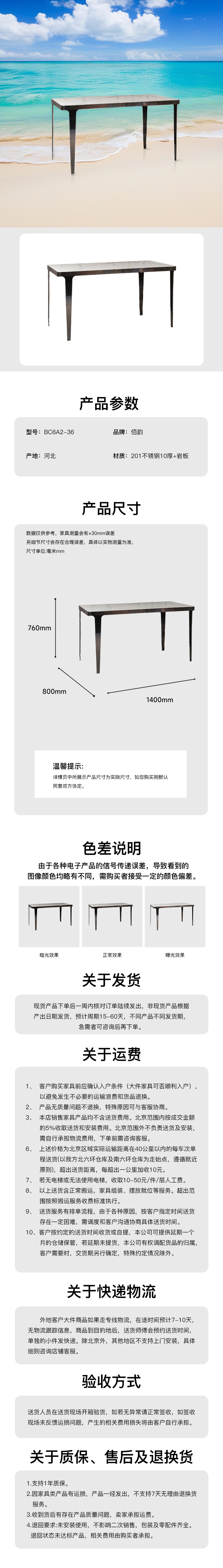 餐桌201不鏽鋼10厚+岩板 BC6A2-36