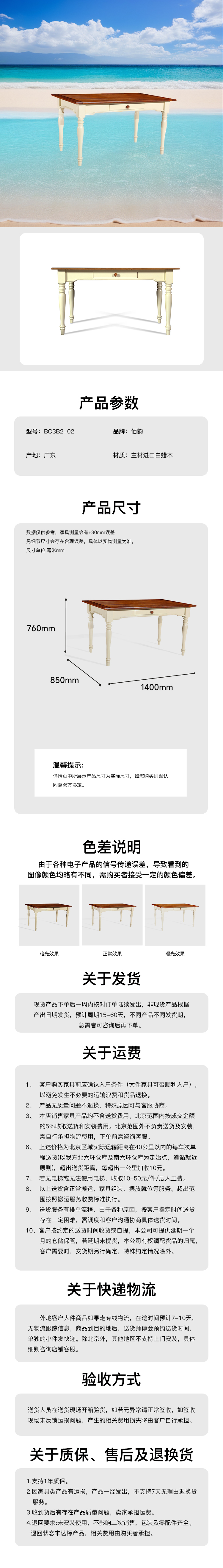 米勒餐桌-蜜蜂色/仿古白主材進口白蠟木 BC3B2-02