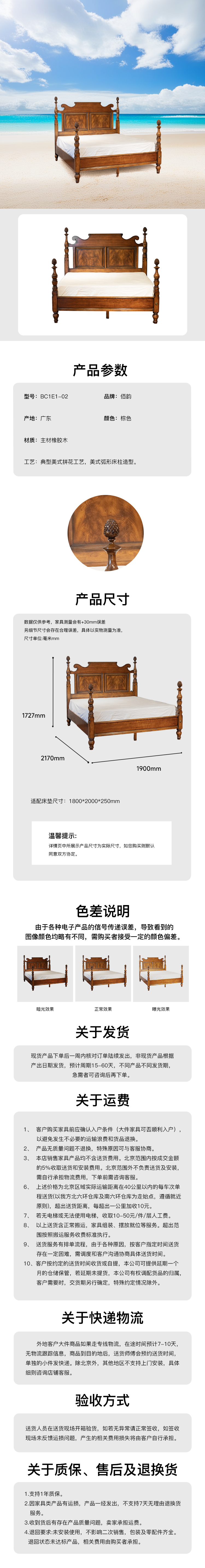 美式大床橡膠木 BC1E1-02