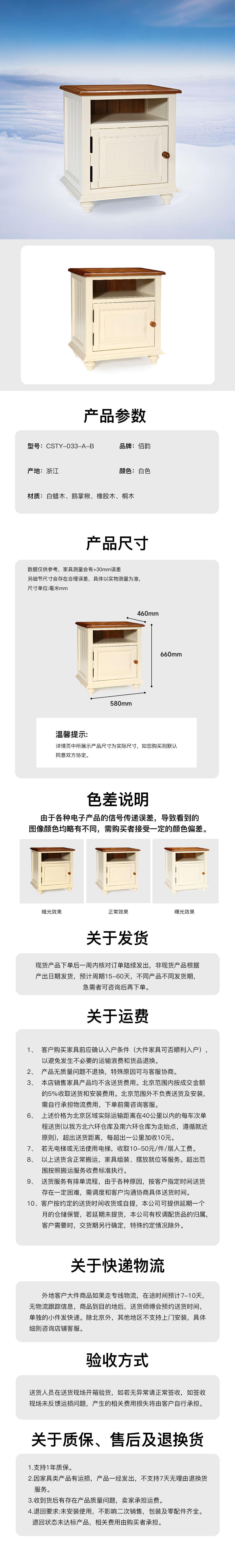 普林斯特床頭櫃-蜜蜂色/粉筆白全實木