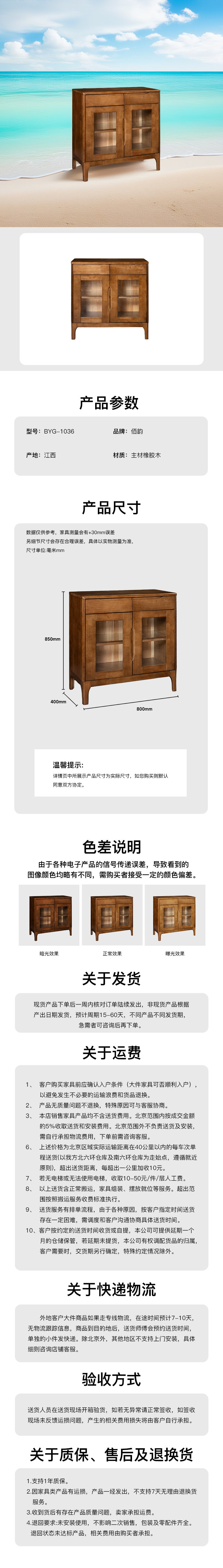 餐邊櫃(胡桃色)主材橡膠木 BYG-1036