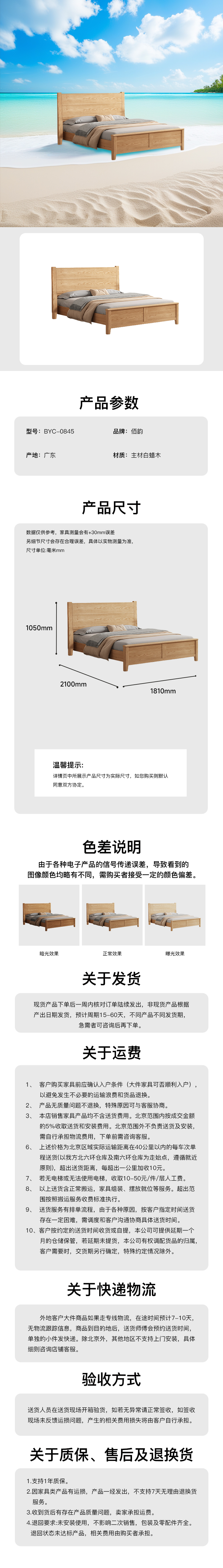 漫嶼實木床(暖杏色)主材白蠟木 BYC-0845