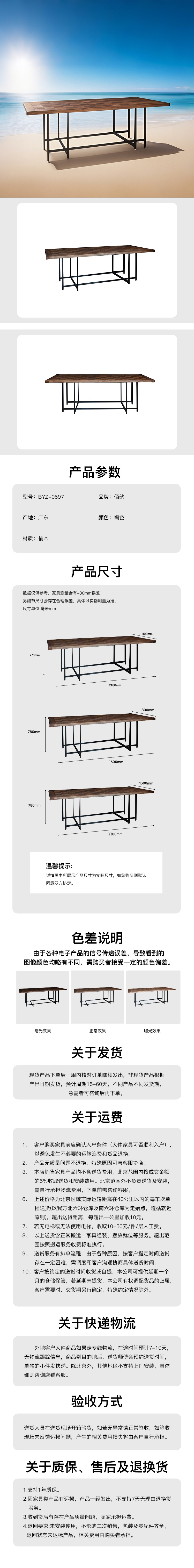 餐桌(2.4米)主材榆木拚花 BYZ-0597