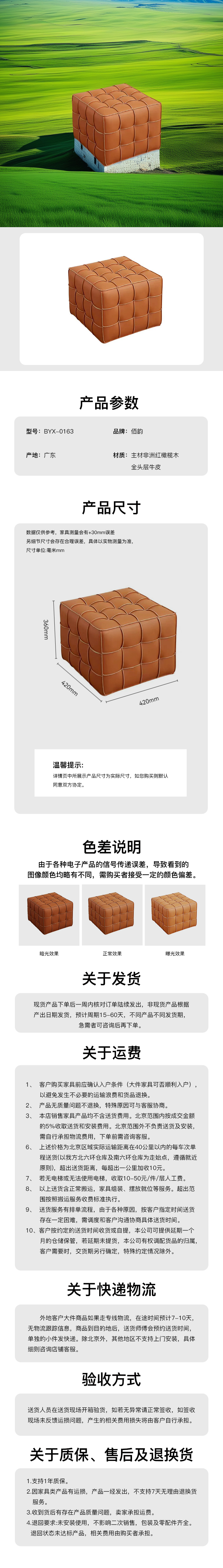 主材:主材:非洲紅橄欖木,俄羅斯落葉鬆。輔材:E1級實木多層板+海綿+環保無膠棉+全頭層牛皮
