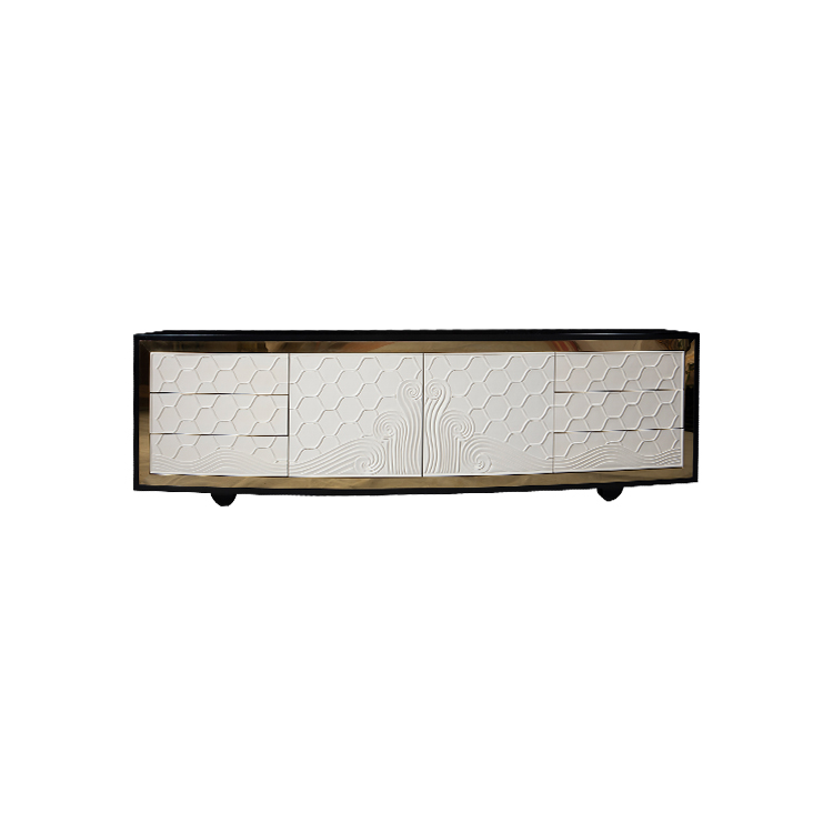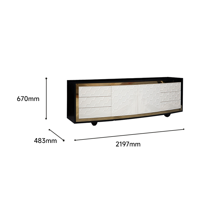 主材:主框架:樺木 輔料:雜木+MDF 裝飾麵:樹脂+鏡麵不鏽鋼前框飾片