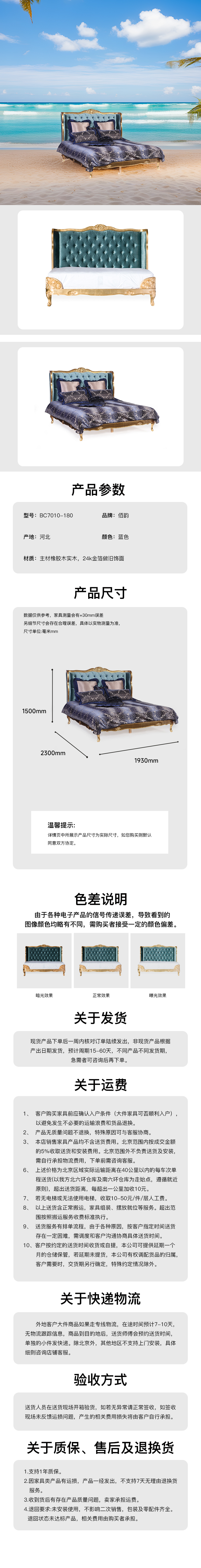 法式軟包大床主材橡膠木 BC7010-180