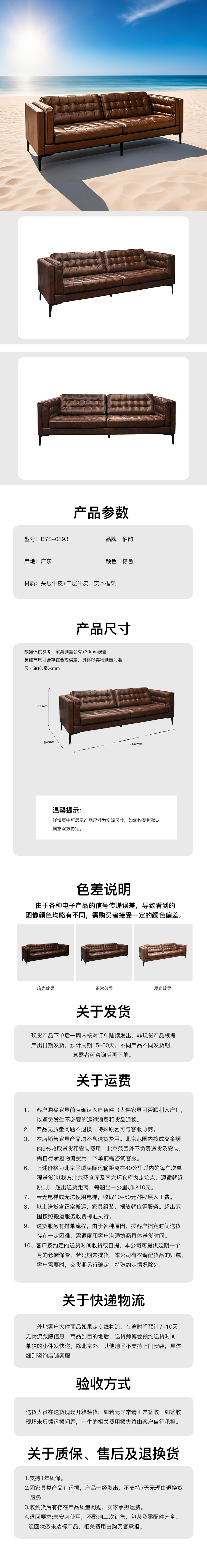 牛皮三位沙發接觸麵為牛皮 BYS-0893