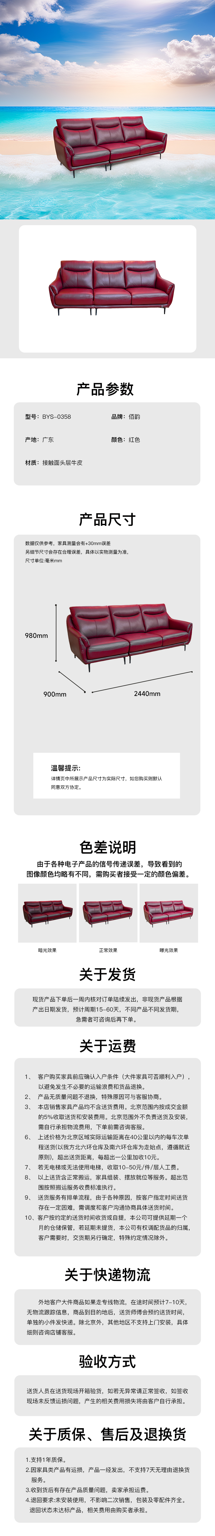 牛皮三位沙發接觸麵頭層牛皮 BYS-0358