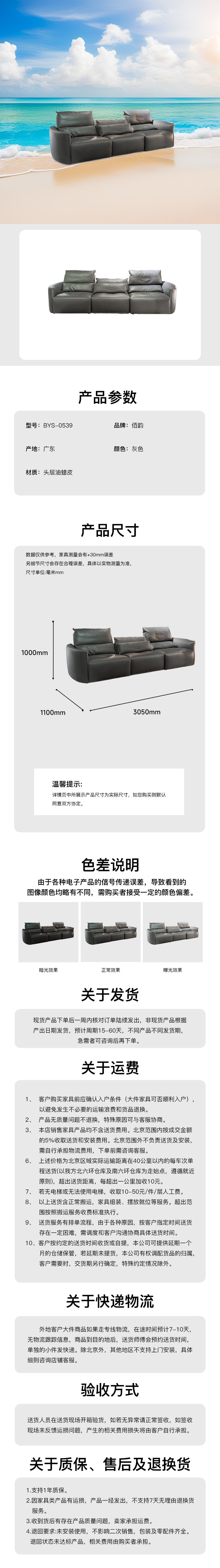 頭層油蠟皮三人位沙發頭層油蠟皮 BYS-0539